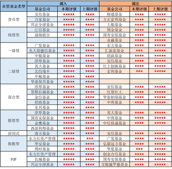 1. 本期五星评级基金公司调入调出情况