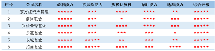 2. 各类型产品管理能力五星评级基金公司