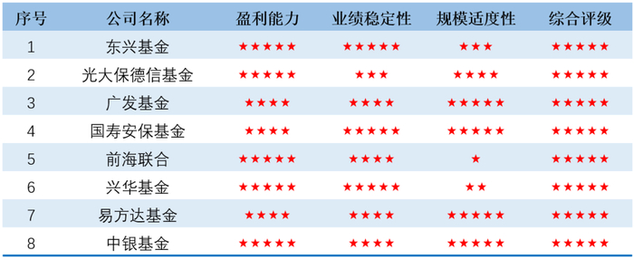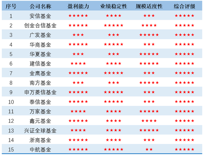 济安金信|2025Q1 五星评级公募基金公司
