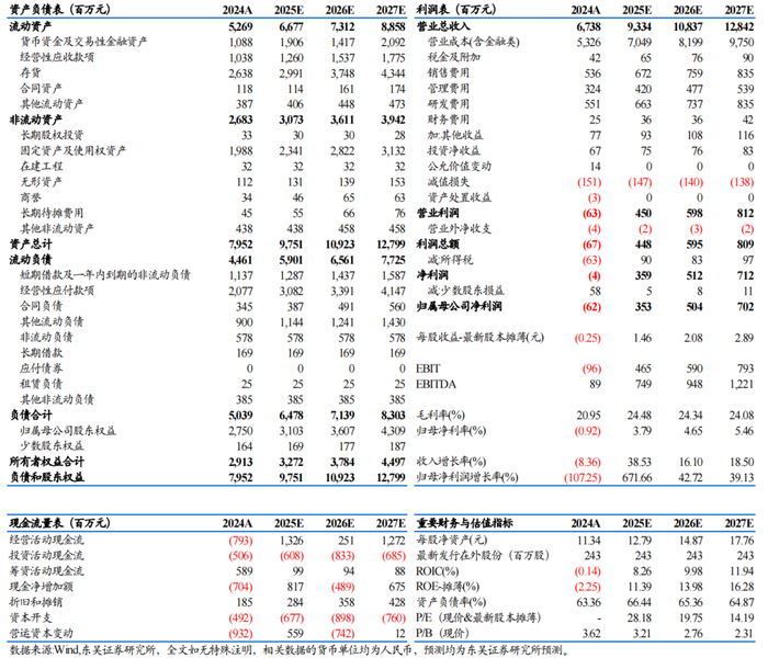 2024年期间费率略有增长、2025Q1存货略有下滑、合同负债有所增长。公司2024年期间费用14.4亿元,同增27%,期间费率21.3%,同比+6pct。2025Q1期间费用3.6亿元,同环比+9%/-10%,期间费率19.1%,同环比-10/-3pct。2025Q1末公司存货为21.8亿元,较2025年初下降约17%,公司合同负债为4.4亿元,较25年初增长28%。2025Q1经营性净现金为-2.5亿元,同比去年同期增加4.6亿元。