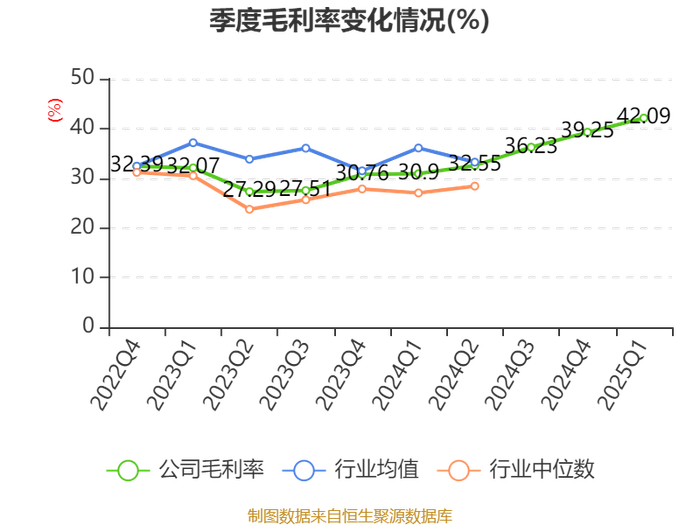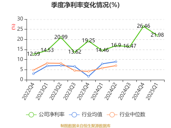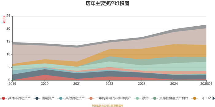 资产重大变化方面,截至2025年一季度末,公司货币资金较上年末增加36.14%,占公司总资产比重上升6.06个百分点;交易性金融资产合计较上年末减少22.21%,占公司总资产比重下降3.61个百分点;应收票据及应收账款较上年末减少5.19%,占公司总资产比重下降3.07个百分点;一年内到期的非流动资产较上年末减少15.07%,占公司总资产比重下降1.46个百分点。