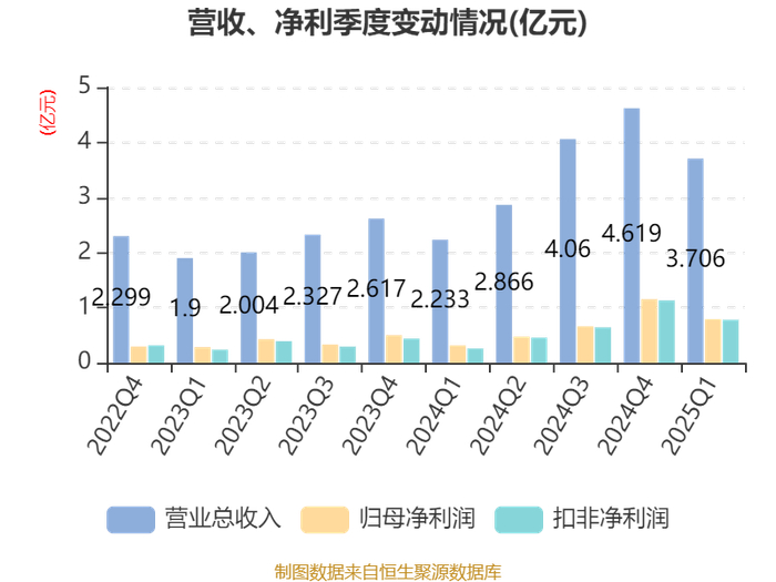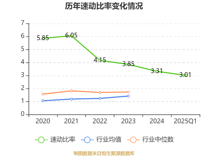 2025年第一季度,公司流动比率为3.75,速动比率为3.01。