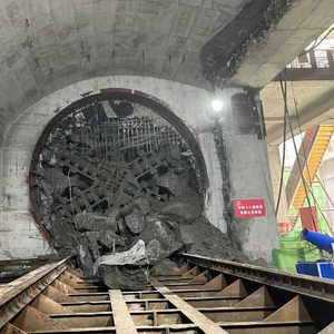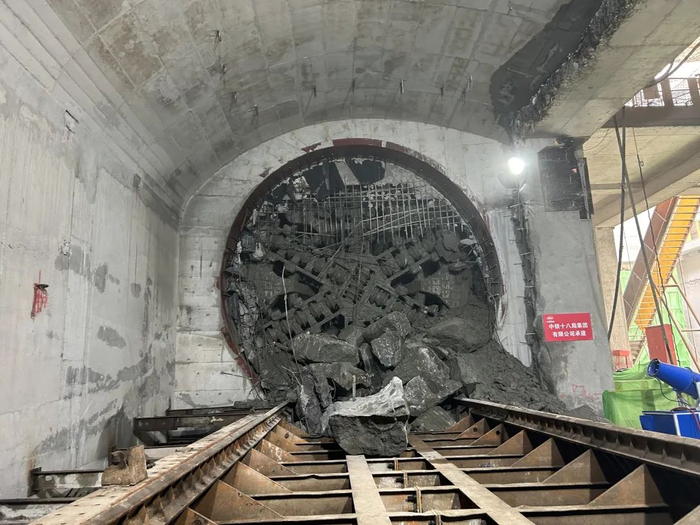 为保障施工顺利推进,项目团队精心优化施工方案,定制“超强版”盾构机,刀盘采用6主梁+6副梁强化结构,并搭载智慧预警系统。施工过程中累计开仓换刀20余次,日均掘进仅3-4环(约5米),在参建各方共同努力下,最终啃下左、右线共约1200米的“硬骨头”。