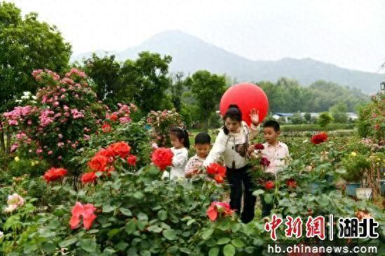 中新网湖北新闻4月30日电 (刘建平 刘承群)“五一”假期前夕,湖北通城麦市镇冷段村月季庄园迎来赏花高峰。百亩月季花海缤纷绽放,游客穿梭其间,一幅“花经济”带动乡村振兴的画卷徐徐展开。