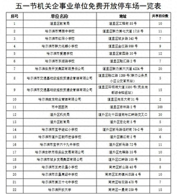 五一假期便民再升级!哈尔滨市53处机关企事业单位停车场免费开放