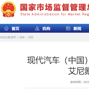 日前,现代汽车(中国)投资有限公司根据《缺陷汽车产品召回管理条例》和《缺陷汽车产品召回管理条例实施办法》的要求,向国家市场监督管理总局备案了召回计划。