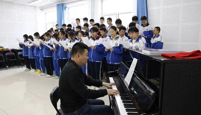学生们正在上音乐课。