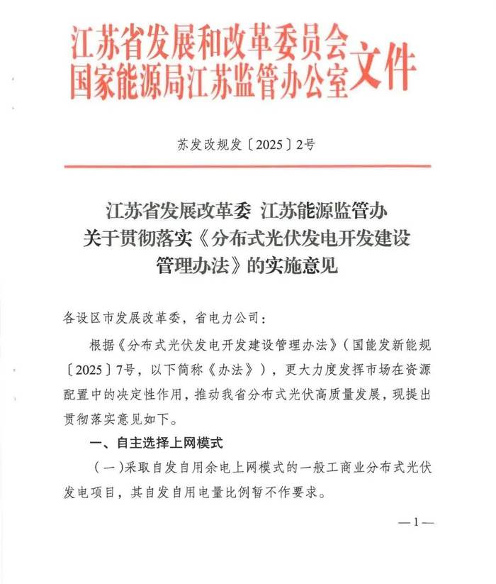 自发自用比例暂不作要求!江苏分布式光伏新政正式发布,有效期至2030年1月23日