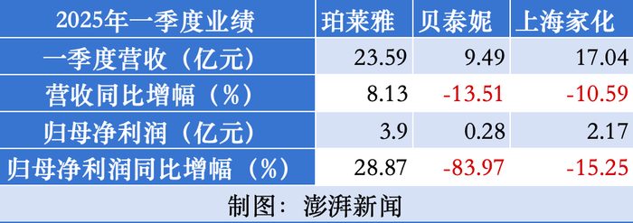 进入2025年一季度,市场竞争依旧激烈。三家A股美妆公司的一季度财报显示,业绩分化态势仍在延续。