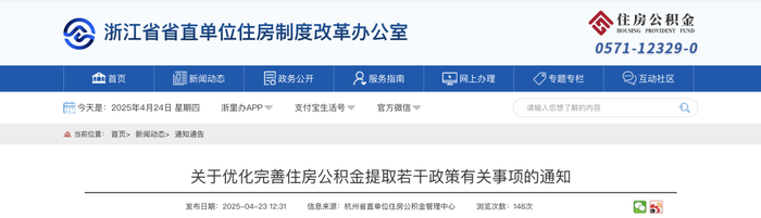 4月23日,浙江发布通知,明确自5月21日起放宽住房公积金提取限制!