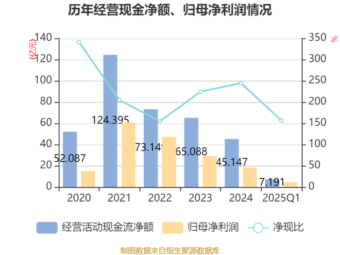 截至2025年一季度末,公司经营活动现金流净额为7.19亿元,同比增长47.67%;筹资活动现金流净额-7.99亿元,同比减少1.5亿元;投资活动现金流净额-3.7亿元,上年同期为-5.19亿元。