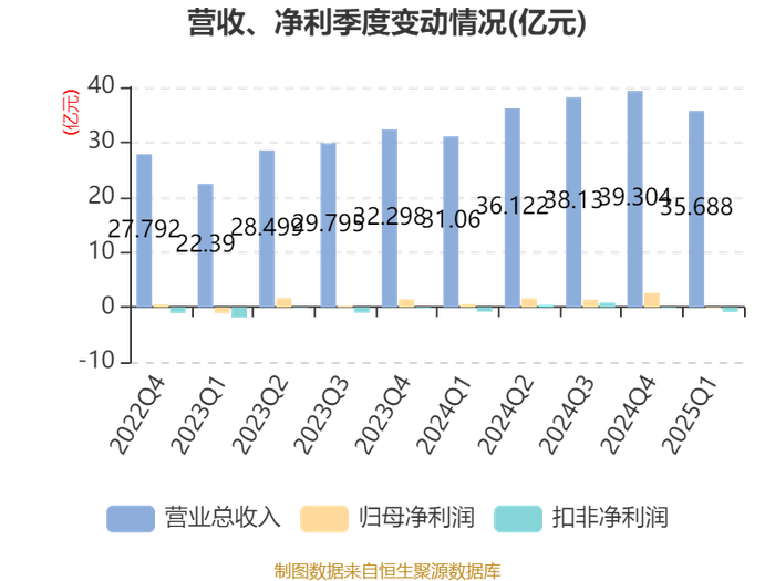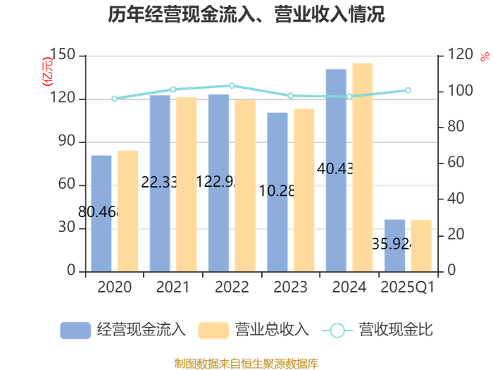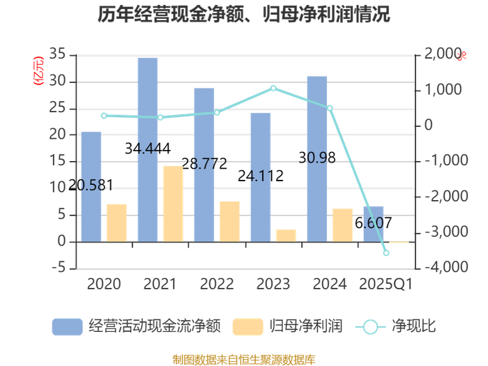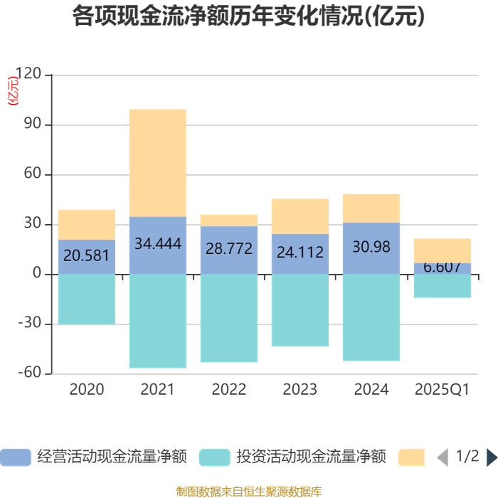 截至2025年一季度末,公司经营活动现金流净额为6.61亿元,同比增长19.29%;筹资活动现金流净额14.68亿元,同比减少7.53亿元;投资活动现金流净额-14.4亿元,上年同期为-16.38亿元。