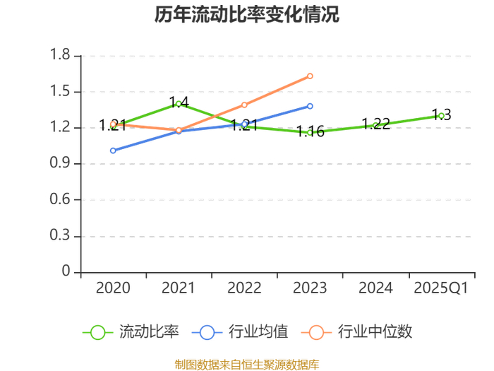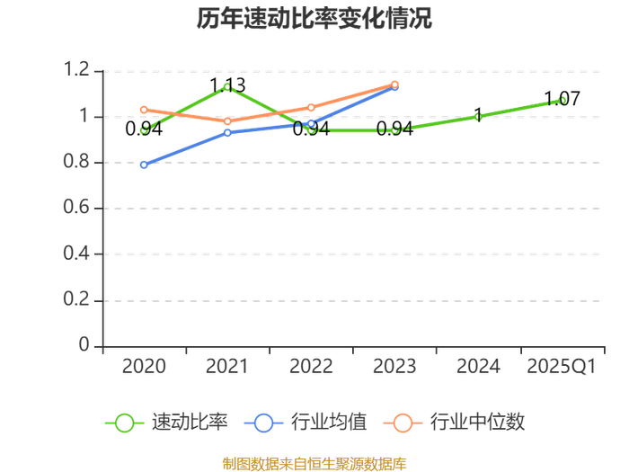2025年第一季度,公司流动比率为1.3,速动比率为1.07。