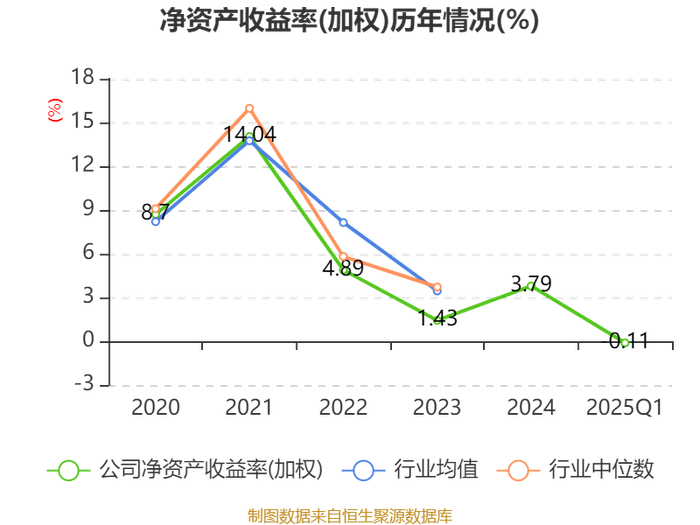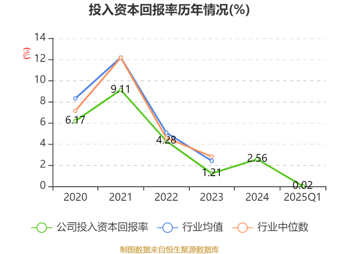 盈利能力方面, 2025年一季度公司加权平均净资产收益率为-0.11%,同比下降0.47个百分点。公司2025年第一季度投入资本回报率为0.02%,较上年同期下降0.27个百分点。