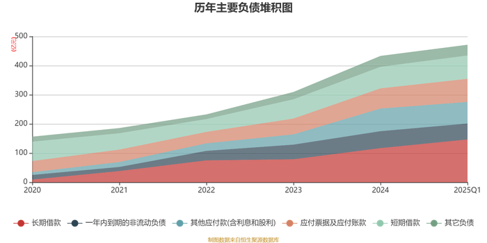 负债重大变化方面,截至2025年一季度末,公司长期借款较上年末增加25.33%,占公司总资产比重上升2.76个百分点;其他应付款(含利息和股利)较上年末减少4.41%,占公司总资产比重下降1.36个百分点;一年内到期的非流动负债较上年末减少6.07%,占公司总资产比重下降1.15个百分点;应付票据及应付账款较上年末增加14.53%,占公司总资产比重上升0.6个百分点。