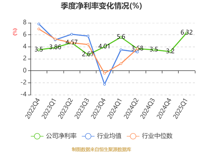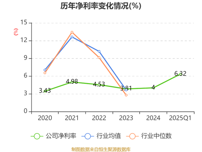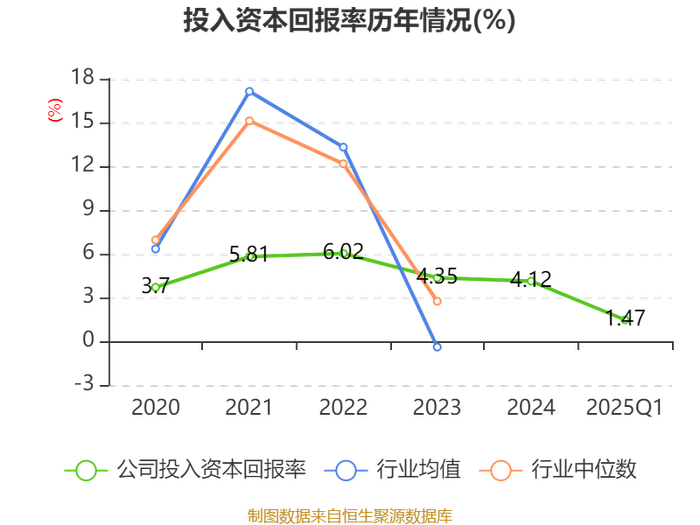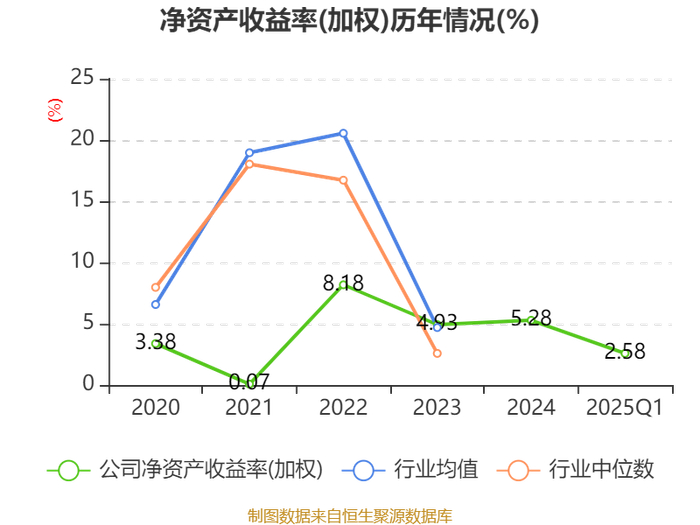 盈利能力方面, 2025年一季度公司加权平均净资产收益率为2.58%,同比上升0.21个百分点。公司2025年第一季度投入资本回报率为1.47%,较上年同期上升0.12个百分点。