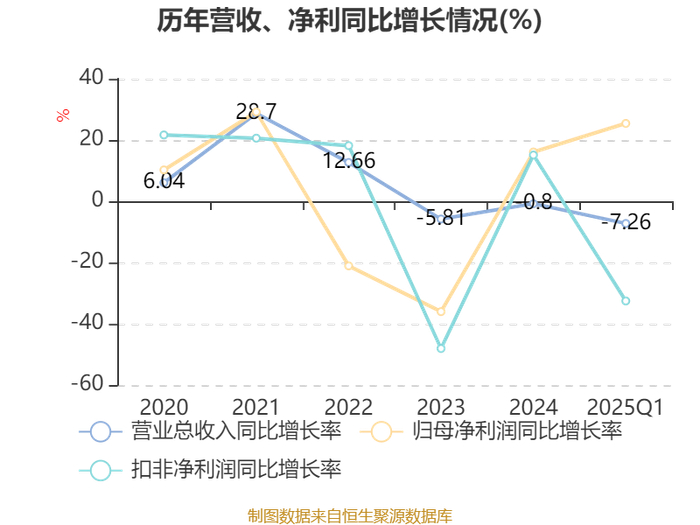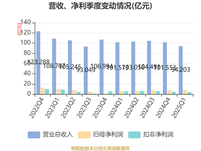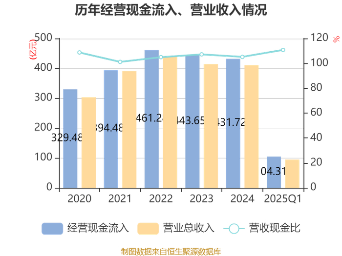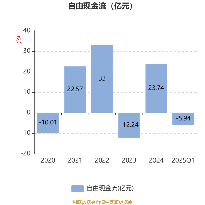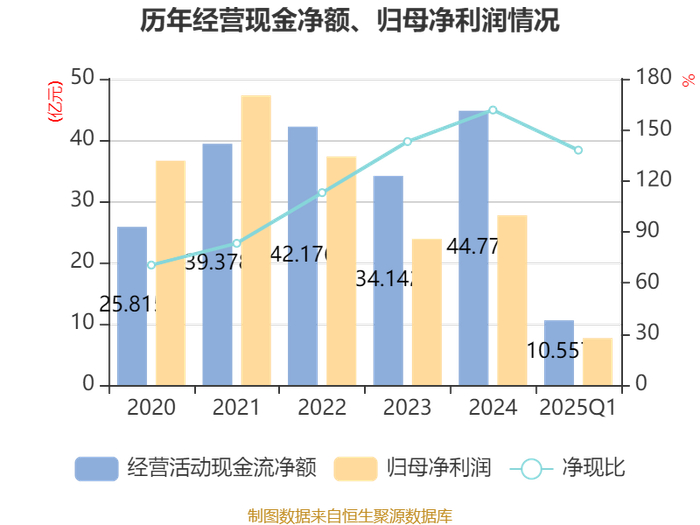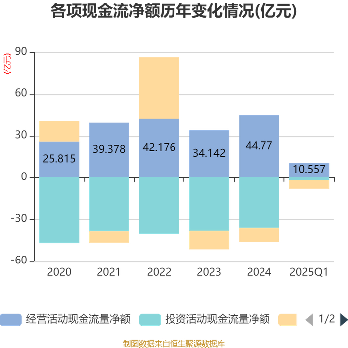 截至2025年一季度末,公司经营活动现金流净额为10.56亿元,同比增长15.08%;筹资活动现金流净额-6.34亿元,同比减少7.32亿元;投资活动现金流净额-1.85亿元,上年同期为-11.91亿元。