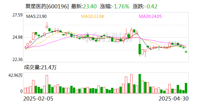 复星医药:2025年一季度净利润7.65亿元 同比增长25.42%