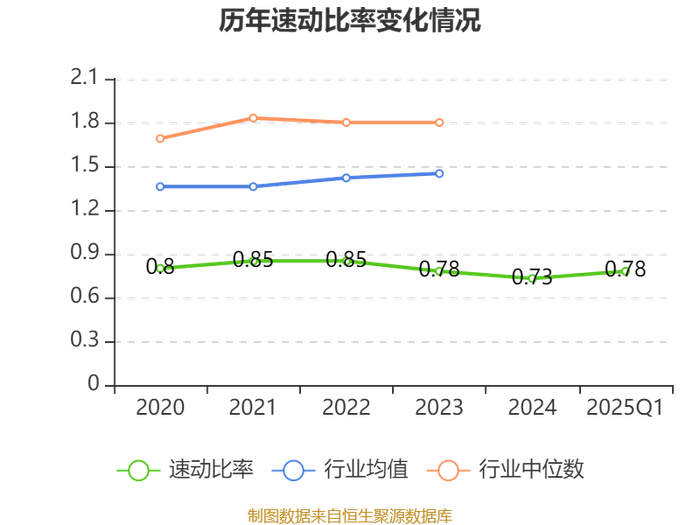 2025年第一季度,公司流动比率为0.97,速动比率为0.78。
