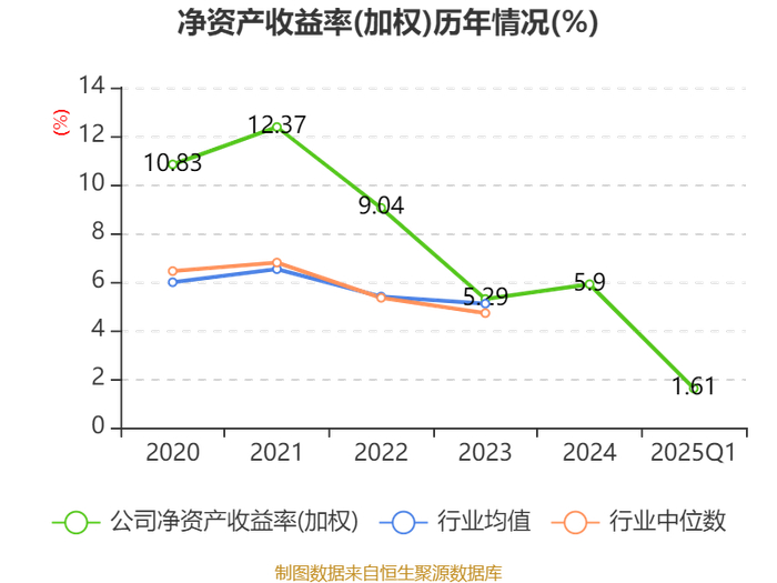盈利能力方面, 2025年一季度公司加权平均净资产收益率为1.61%,同比上升0.28个百分点。公司2025年第一季度投入资本回报率为1.16%,较上年同期上升0.1个百分点。