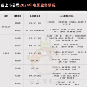各上市公司2024年电影业务情况 资料来源:公司财报