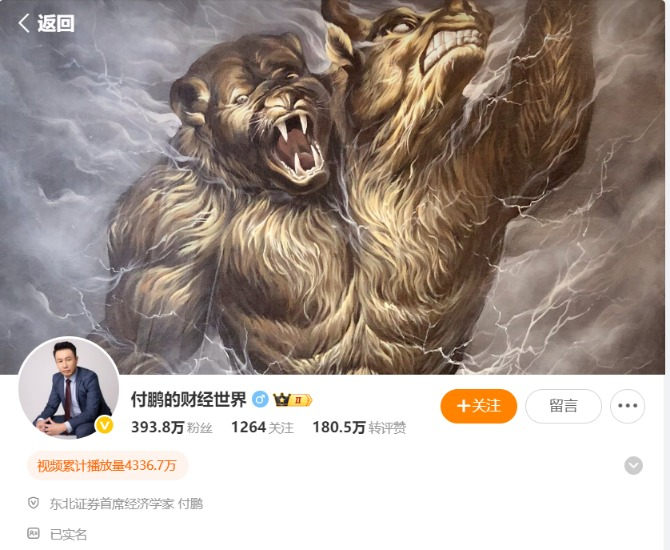 2024年11月,付鹏因在朋友圈“炮轰”汇丰造谣相关情况,再度引发市场关注。受系列舆论影响,此后付鹏微信视频号“付鹏的财经世界”被“禁止关注”。目前,其个人社交账号“付鹏的财经世界”在微博、小红书等平台共计拥有数百万粉丝。