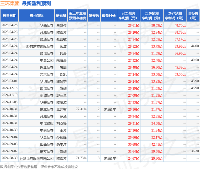 最新盈利预测明细如下:
