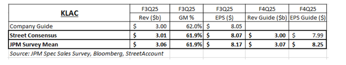 持仓评分(1=最大空头/低配,10=最大多头/超配):5盈利预期:投资者普遍预计本季度业绩和指引将有小幅超预期。四分之三的受访者认为公司不会调整对2025年WFE行业中个位数增长(MSD,mid-single digit)的展望。