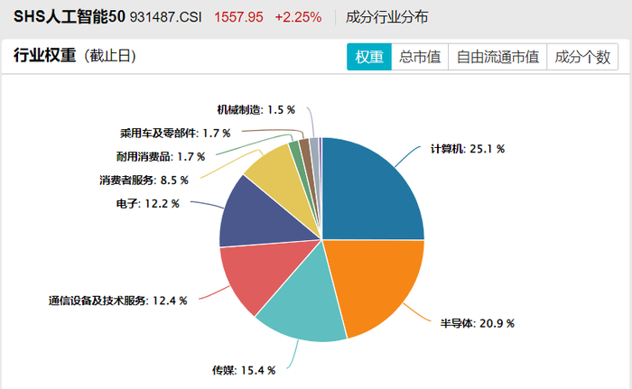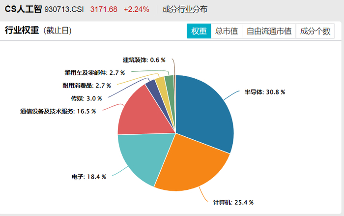 中证人工智能主题指数:按照中证二级行业划分,主要集中在半导体、计算机、电子等领域。