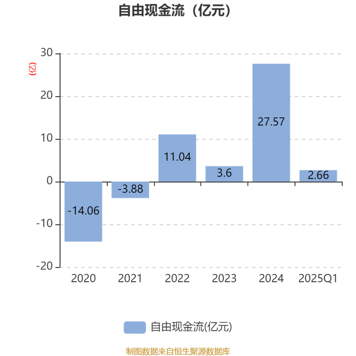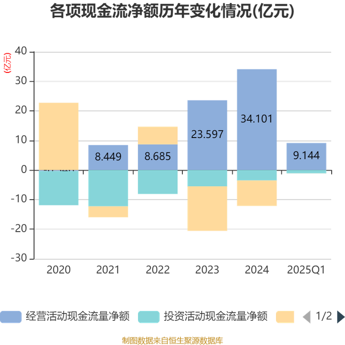 截至2025年一季度末,公司经营活动现金流净额为9.14亿元,同比下降15.87%;筹资活动现金流净额-367.63万元,同比增加2.1亿元;投资活动现金流净额-1.11亿元,上年同期为-2.24亿元。