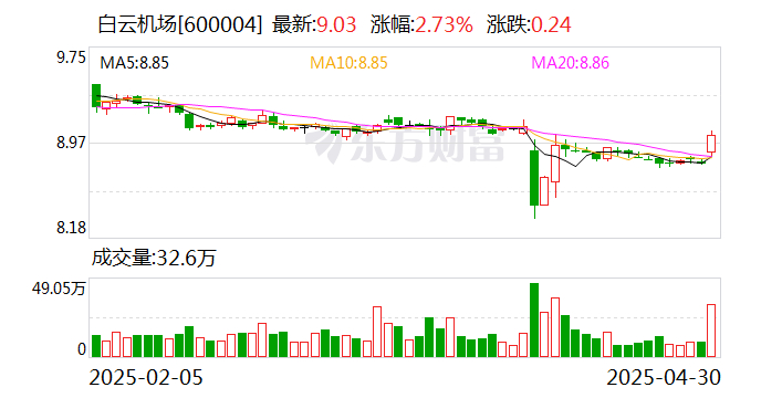 白云机场:2025年一季度净利润2.96亿元 同比增长57.71%
