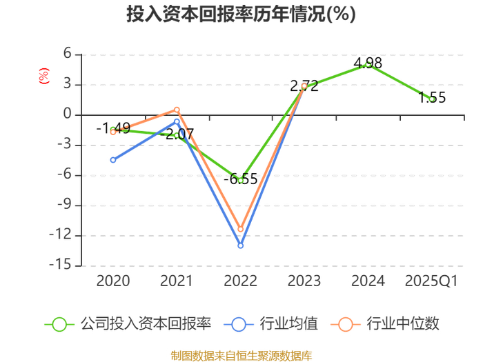 盈利能力方面, 2025年一季度公司加权平均净资产收益率为1.6%,同比上升0.54个百分点。公司2025年第一季度投入资本回报率为1.55%,较上年同期上升0.5个百分点。