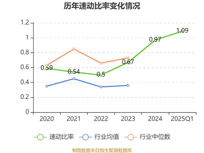 2025年第一季度,公司流动比率为1.1,速动比率为1.09。