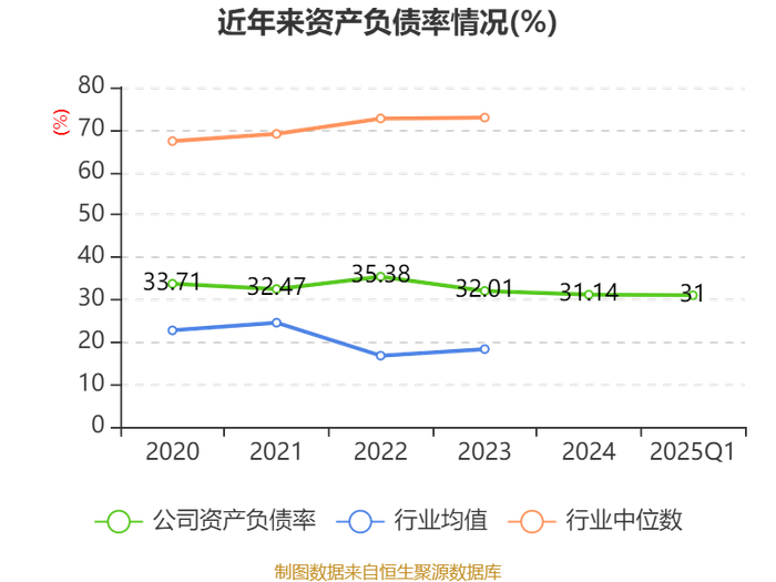 负债重大变化方面,截至2025年一季度末,公司应付职工薪酬较上年末增加139.69%,占公司总资产比重上升0.5个百分点;其他应付款(含利息和股利)较上年末减少0.87%,占公司总资产比重下降0.38个百分点;应付票据及应付账款较上年末减少7.86%,占公司总资产比重下降0.28个百分点;应交税费较上年末增加44.86%,占公司总资产比重上升0.21个百分点。