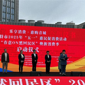 4月30日,“乐享消费•惠购青城”——呼和浩特市2025年“五一”惠民促消费活动暨“春意ON然回民区”焕新消费季活动启动仪式在新华广场举行。