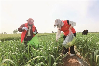为庆祝“五一”国际劳动节的到来,近日,开封市城乡一体化示范区金明池街道水岸社区组织开展“传承农耕文化 共享丰收之乐”劳动节主题助农采摘活动,辖区台胞台属和社区工作人员志愿到田间地头采摘蒜苔,帮助农民朋友解困,助力乡村振兴。