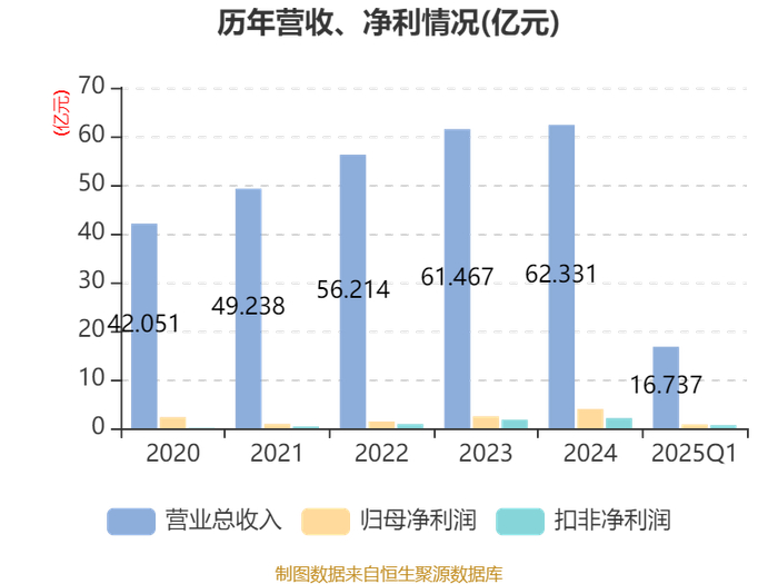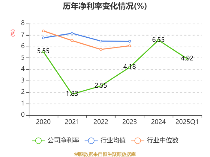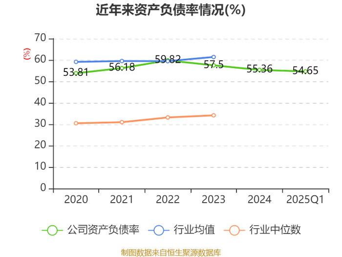 负债重大变化方面,截至2025年一季度末,公司长期借款较上年末减少14.12%,占公司总资产比重下降2.68个百分点;一年内到期的非流动负债较上年末增加57.97%,占公司总资产比重上升1.78个百分点;短期借款较上年末增加10.6%,占公司总资产比重上升0.97个百分点;应付票据及应付账款较上年末减少4.01%,占公司总资产比重下降0.73个百分点。