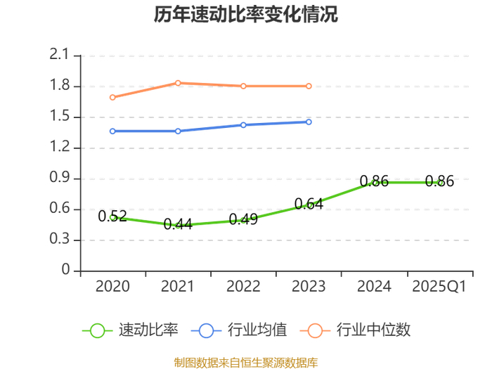 2025年第一季度,公司流动比率为1.28,速动比率为0.86。