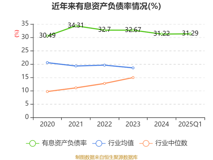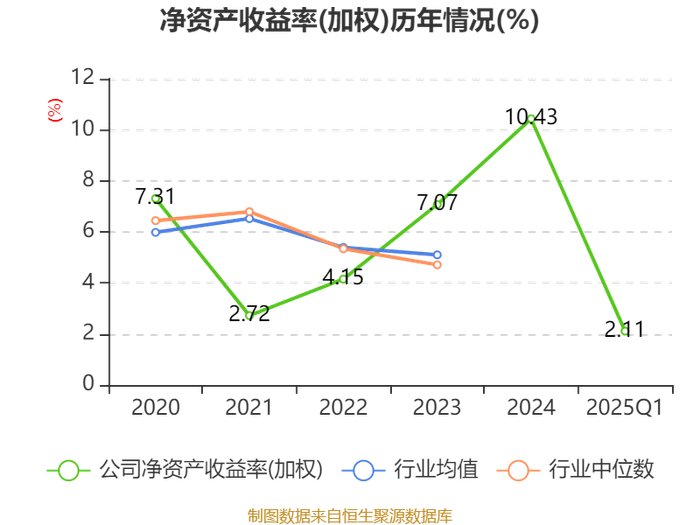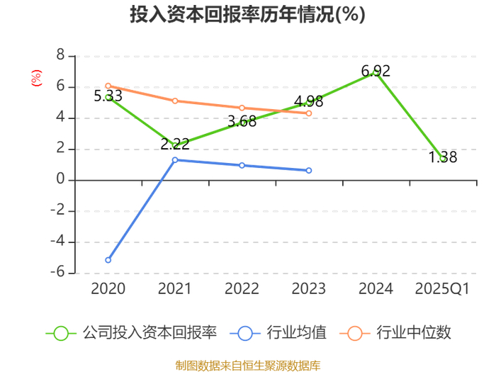 盈利能力方面, 2025年一季度公司加权平均净资产收益率为2.11%,同比上升0.02个百分点。公司2025年第一季度投入资本回报率为1.38%,较上年同期上升0.09个百分点。