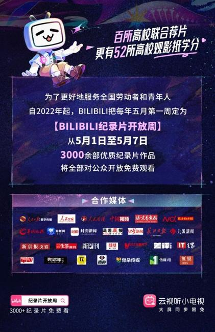 原标题:《B站纪录片开放周:3400部纪录片五一免费看,高校学子还能抵学分!》