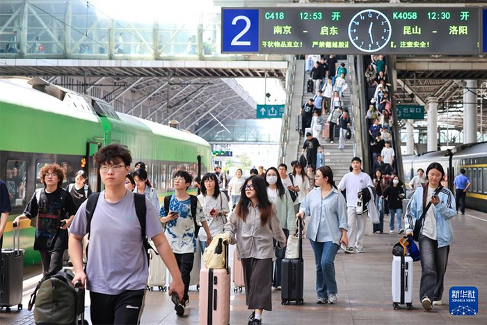 4月30日,旅客在南京火车站乘车出行。新华社发(苏阳 摄)