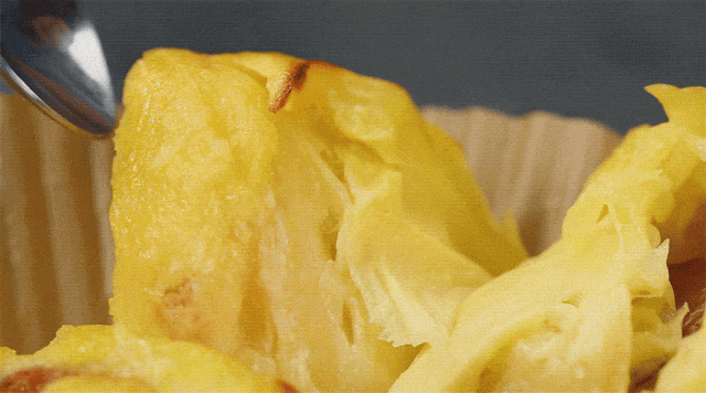 烤去了部分水分的榴莲果肉甜度和香气都得到了浓缩,香甜的味道瞬间翻了好几倍,口口惊艳!