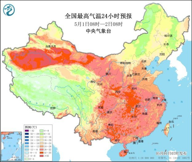 五一小长假首日,全国雨水范围较小,东北地区东部、新疆北疆以及云南、广东、海南等地部分地区有小到中雨,黑龙江东北部、云南西南部等地部分地区有大雨,其他大部地区以晴到多云天气为主,比较适宜外出。但需要注意的是,今明两天,陕西、河南、湖北、湖南等中部地区气温上升迅速,西安、郑州、武汉等主要省会城市白天最高气温均在35℃上下,户外活动需注意做好防暑降温工作,及时补充水分。