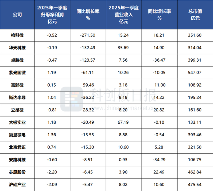 总市值超过100亿的半导体行业公司中,有13家公司一季度净利润出现下滑,其中不乏格科微、卓胜微、斯达半导等熟悉的名字。