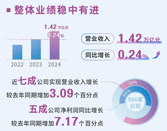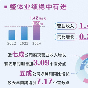 【环球网财经综合报道】4月30日,上交所发布了2024年科创板公司经营业绩概览。数据显示,2024年,科创板公司共实现营业收入1.42万亿元,同比增长0.24%。近七成公司实现营业收入增长,同比增加3.09个百分点,其中54家公司增幅超过50%,285家公司营收创历史新高。全年共实现净利润475.23亿元,五成公司实现净利润增长,同比增加7.17个百分点。