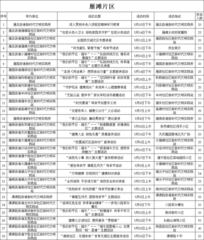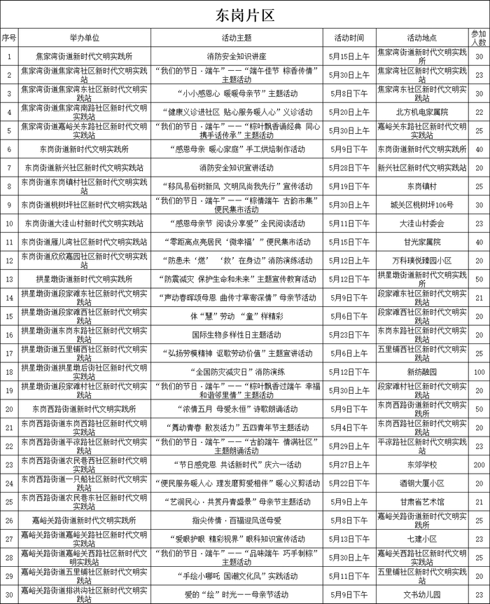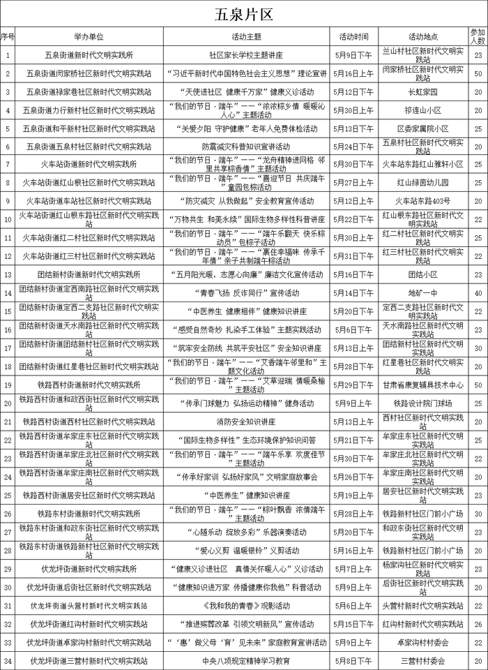 城关区新时代文明实践各所(站)2025年5月活动安排表新鲜出炉!