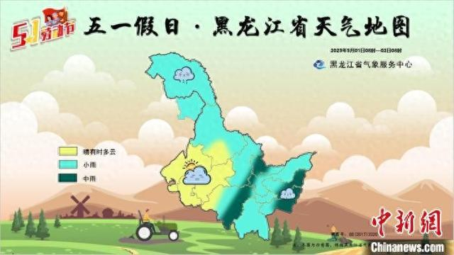 “五一”假日黑龙江省天气地图(5月1日8时至2日8时)。 黑龙江省气象局供图