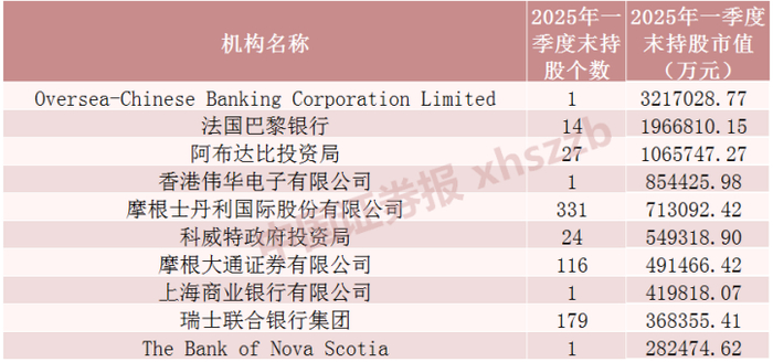 持仓市值前十QFII机构