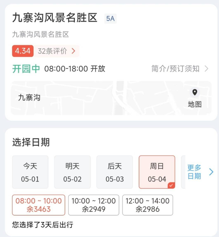 注意!5月2日、3日九寨沟门票已售罄 4日、5日还有少量门票