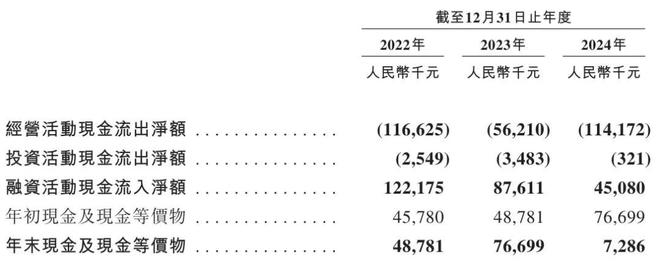 讯众通信过去三年的经营活动现金一直处于流出状态,2022年、2023年、2024年分别流出1.17亿元、5621万元、1.14亿元,流入分别为1.22亿、8761万、4508万元,这使得讯众通信现金流处于非常紧张的状态。